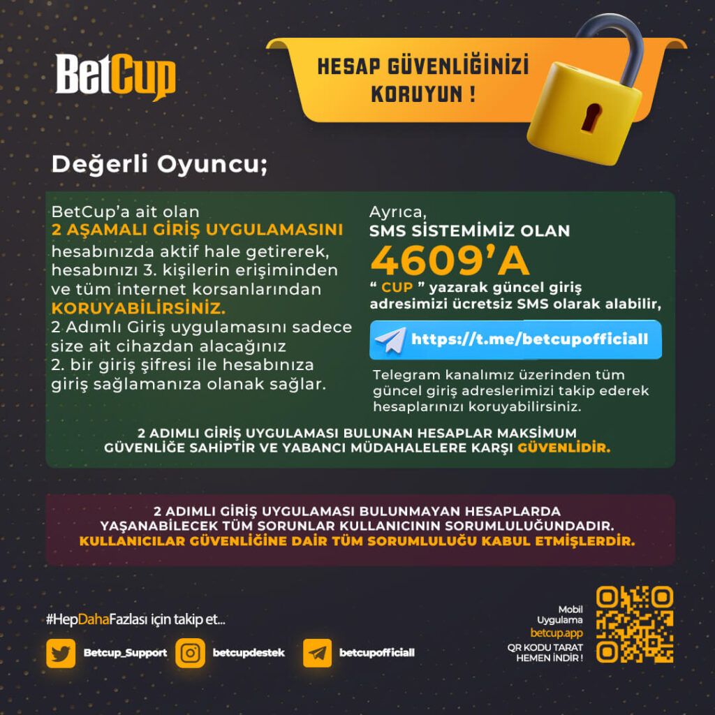 Çuraçao lisanslı olarak yayında bulunmakta olan site yasal canlı bahis platformu olma özelliği taşımaktadır. Ancak bununla beraber ülkemizdeki yasal prosedürler gereği zaman zaman adres değişikliğine gitmek durumundadır. Betcup adres değişikliği olduğunda en kısa süre içerisinde sayfalarımızda Betcup yeni giriş adresi yer almaktadır. Böylece sitenin üyeleri siteye giriş yapabilmek için sürekli olarak yenilemekte olduğumuz Betcup güncel giriş adresi yazılarımıza göz atabilirler. Ayrıca canlı bahis sitesine giriş yapamadığınızda iletişim bilgileri üstünden siteye erişim sağlanabilir. Yıllarını sektörde harcayarak tüm olanaklarını müşterilerinin önüne seren güvenilir bir firmadır.